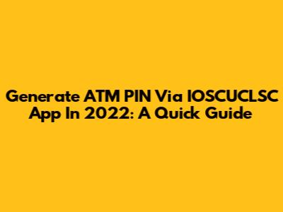 Generate ATM PIN Via IOSCUCLSC App In 2022: A Quick Guide