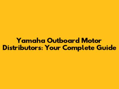 Yamaha Outboard Motor Distributors: Your Complete Guide