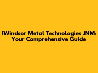 Understanding IWindsor Metal Technologies JNM