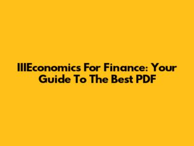 IIIEconomics For Finance: Your Guide To The Best PDF