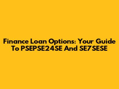 Finance Loan Options: Your Guide To PSEPSE24SE And SE7SESE