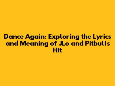 "Dance Again," the electrifying collaboration between Jennifer Lopez (JLo) and Pitbull, is more than just a catchy tune; it's an anthem about resilience, rediscovering joy, and the power of dance. Released in 2012, the song quickly climbed the charts, becoming a global sensation and solidifying JLo's status as a dance-pop icon. The lyrics, combined with the infectious beat, create an atmosphere of liberation and encouragement, urging listeners to let go of their worries and embrace the moment. Guys, let's dive deep into the lyrical landscape of "Dance Again" and uncover the meaning behind this unforgettable hit.