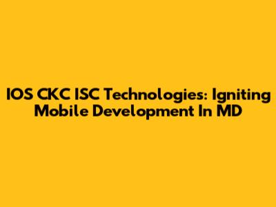 IOS CKC ISC Technologies: Igniting Mobile Development In MD