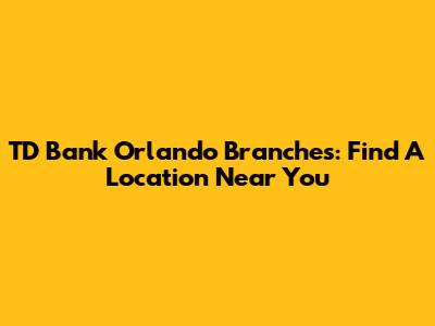 TD Bank Orlando Branches: Find A Location Near You