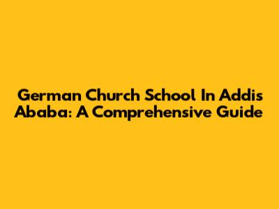 German Church School In Addis Ababa: A Comprehensive Guide