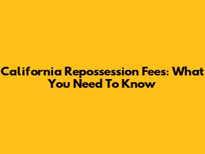 California Repossession Fees: What You Need To Know