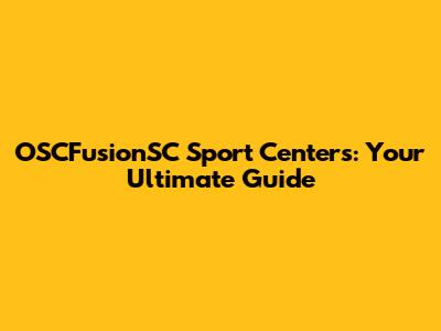 OSCFusionSC Sport Centers: Your Ultimate Guide
