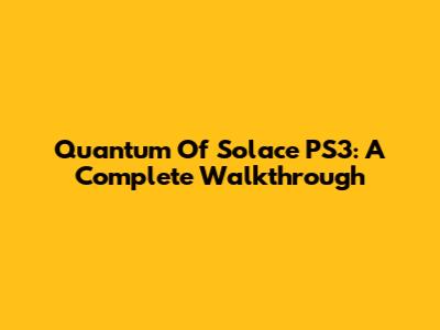 Quantum Of Solace PS3: A Complete Walkthrough