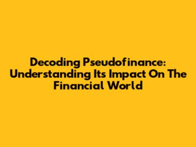Decoding Pseudofinance: Understanding Its Impact On The Financial World