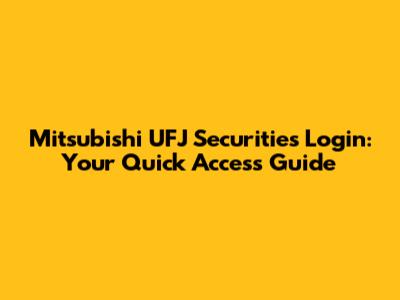 Mitsubishi UFJ Securities Login: Your Quick Access Guide