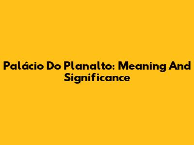 Palácio Do Planalto: Meaning And Significance