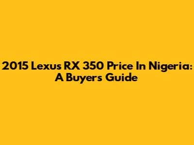2015 Lexus RX 350 Price In Nigeria: A Buyer's Guide