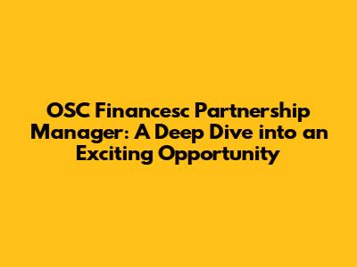 Hey guys! Ever wondered what it takes to be a Partnership Manager at a cutting-edge financial company like OSC Financesc? Well, buckle up because we're about to dive deep into this exciting role. Being a Partnership Manager isn't just about shaking hands and making deals; it's about forging strong, lasting relationships that drive growth and innovation. At OSC Financesc, this role is particularly vital, given the company's dynamic environment and commitment to expanding its reach within the financial sector.