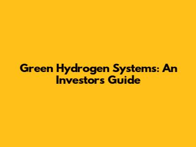Green Hydrogen Systems: An Investor's Guide