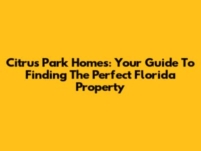 Citrus Park Homes: Your Guide To Finding The Perfect Florida Property