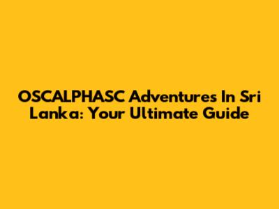 OSCALPHASC Adventures In Sri Lanka: Your Ultimate Guide