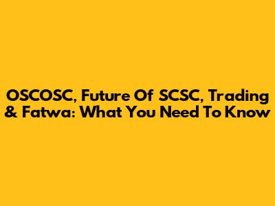 OSCOSC, Future Of SCSC, Trading & Fatwa: What You Need To Know