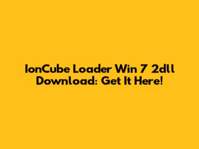 IonCube Loader Win 7 2dll Download: Get It Here!