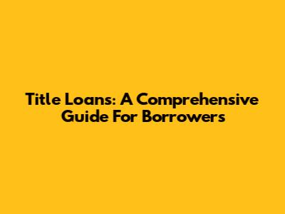 Title Loans: A Comprehensive Guide For Borrowers
