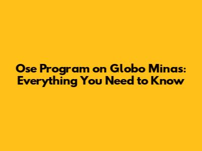 Hey guys! Ever wondered about the Ose Program airing on Globo Minas? You're not alone! This guide will dive deep into what makes this program tick, why it's so popular, and how you can catch it. We'll explore its format, the kind of content it usually features, and what makes it a must-watch for many viewers in the Minas Gerais region. So, grab a comfy seat, and let's get started!