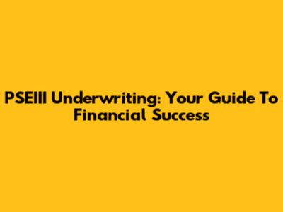 PSEIII Underwriting: Your Guide To Financial Success