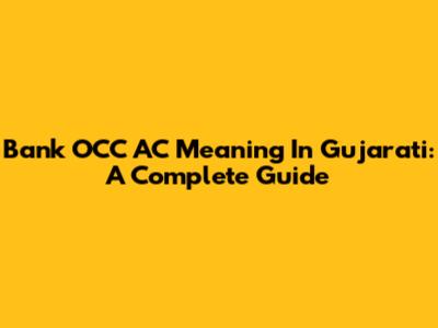 Bank OCC AC Meaning In Gujarati: A Complete Guide
