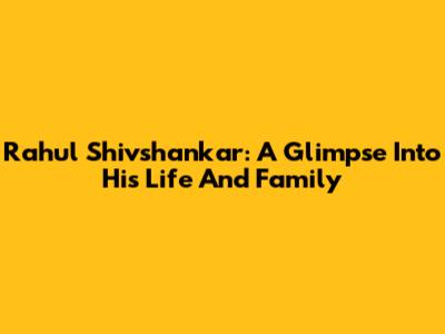 Rahul Shivshankar: A Glimpse Into His Life And Family