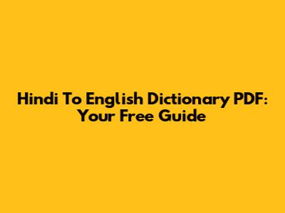 Hindi To English Dictionary PDF: Your Free Guide