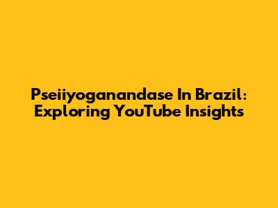 Pseiiyoganandase In Brazil: Exploring YouTube Insights