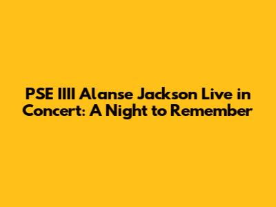 Why You Shouldn't Miss a PSE IIII Alanse Jackson Concert