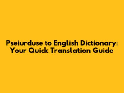 A pseiurduse to English dictionary is an essential tool for anyone who needs to understand or communicate in both languages. Whether you're a student, a professional, or simply curious, having access to a reliable translation tool can open up new opportunities and expand your understanding of the world. By choosing the right dictionary and using it effectively, you can overcome language barriers and connect with people from different cultures. So, dive in and start exploring the world of pseiurduse to English translation today!
