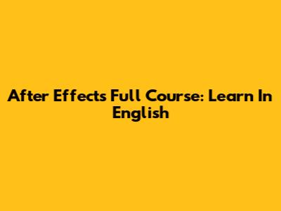 After Effects Full Course: Learn In English