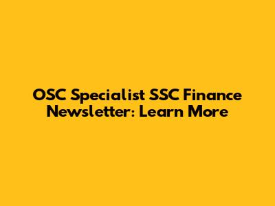 OSC Specialist SSC Finance Newsletter: Learn More