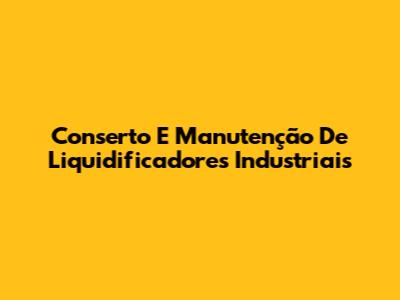 Conserto E Manutenção De Liquidificadores Industriais