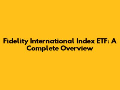 Fidelity International Index ETF: A Complete Overview