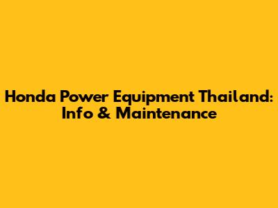 Honda Power Equipment Thailand: Info & Maintenance