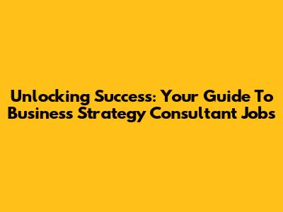 Unlocking Success: Your Guide To Business Strategy Consultant Jobs