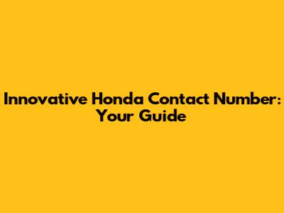 Innovative Honda Contact Number: Your Guide