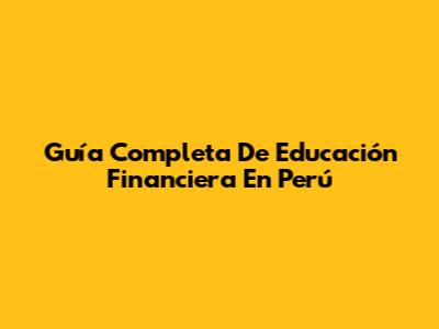 Guía Completa De Educación Financiera En Perú