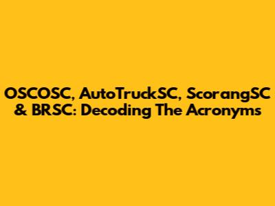 OSCOSC, AutoTruckSC, ScorangSC & BRSC: Decoding The Acronyms