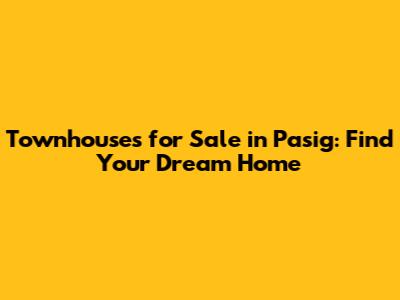 Townhouses For Sale In Pasig: Find Your Dream Home