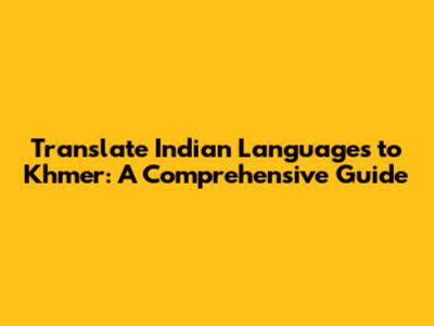 Are you looking to translate content from an Indian language to Khmer? Whether it's for business, travel, or personal interest, accurate translation is essential. In this comprehensive guide, we'll explore the various methods and tools available to help you seamlessly translate between Indian languages and Khmer, ensuring your message is clearly and effectively conveyed.