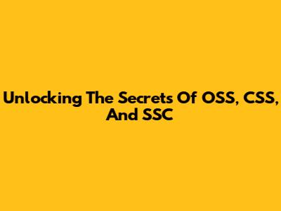 Unlocking The Secrets Of OSS, CSS, And SSC