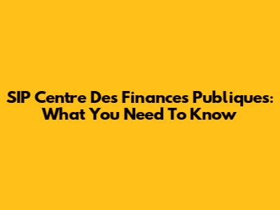 SIP Centre Des Finances Publiques: What You Need To Know