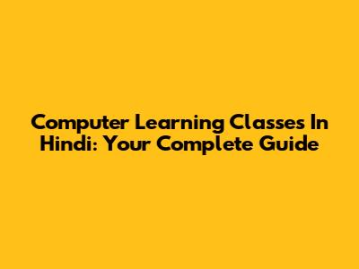 Computer Learning Classes In Hindi: Your Complete Guide
