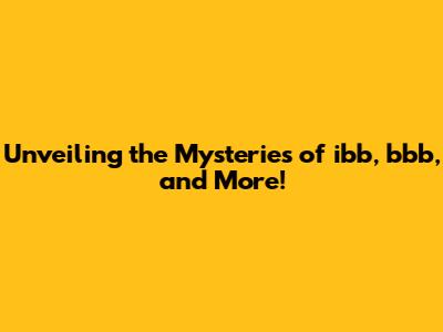 Unveiling The Mysteries Of Ibb, Bbb, And More!