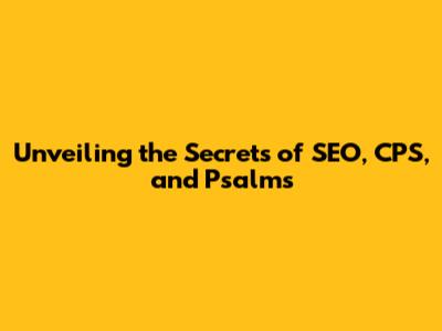 Now, how do SEO, CPS, and Psalms all fit together? Well, they might seem like separate worlds, but they all share common ground. They all require dedication, a strategic approach, and a focus on long-term results.