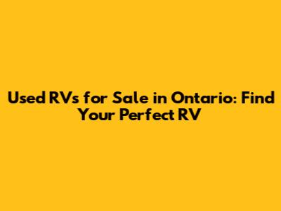 Used RVs For Sale In Ontario: Find Your Perfect RV
