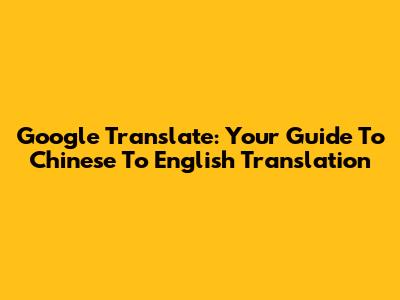Google Translate: Your Guide To Chinese To English Translation