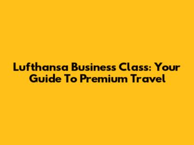 Lufthansa Business Class: Your Guide To Premium Travel